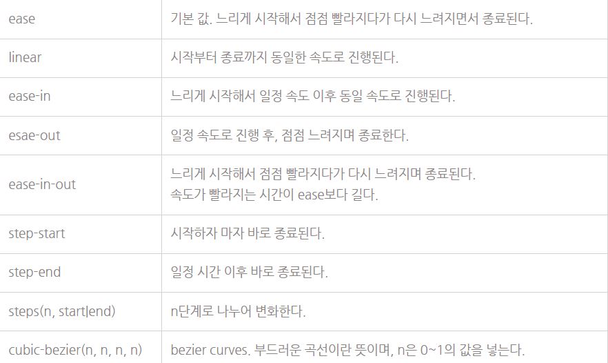transition-timing-function : ? ; = 이렇게 동작시켜주세요